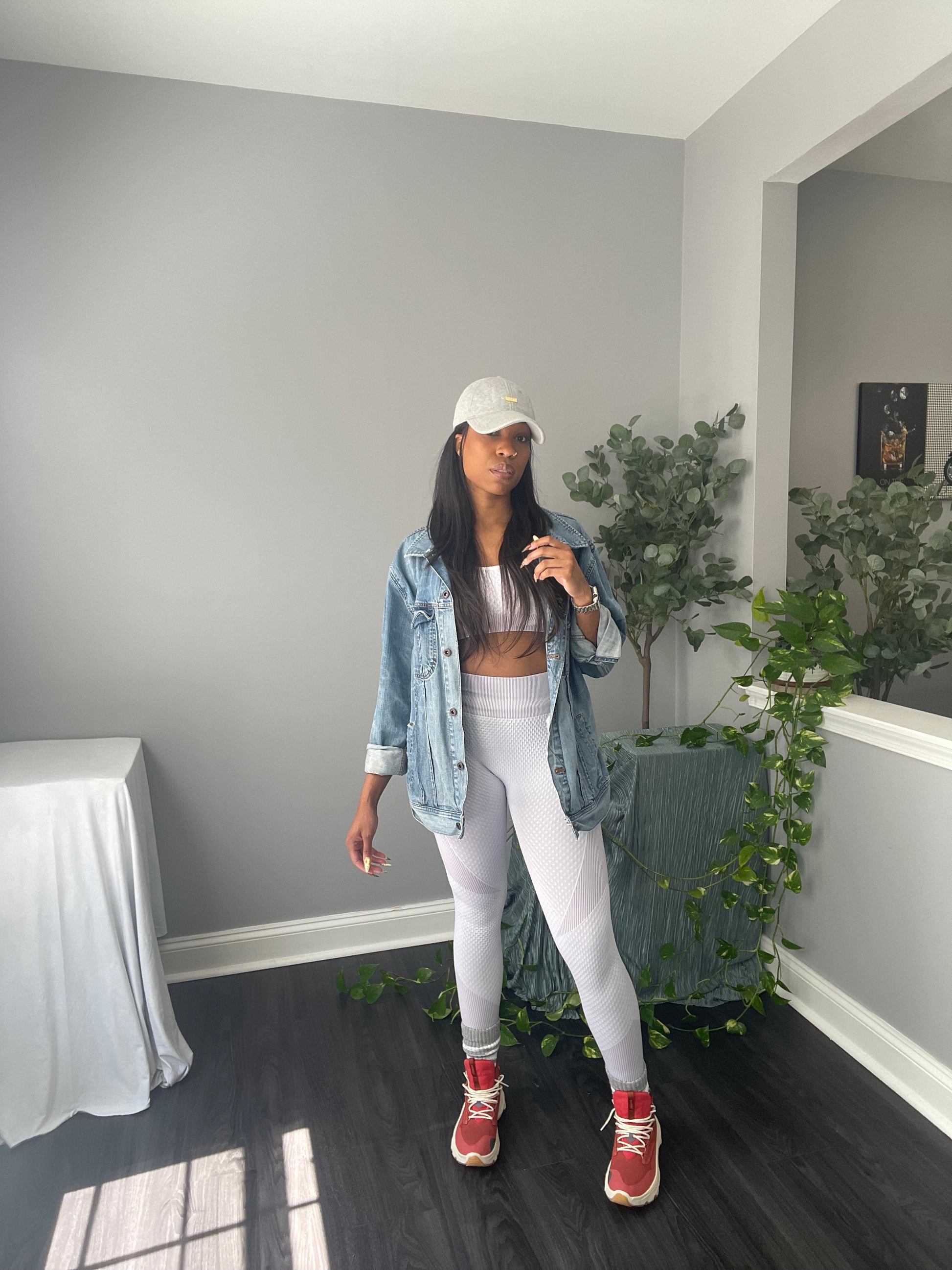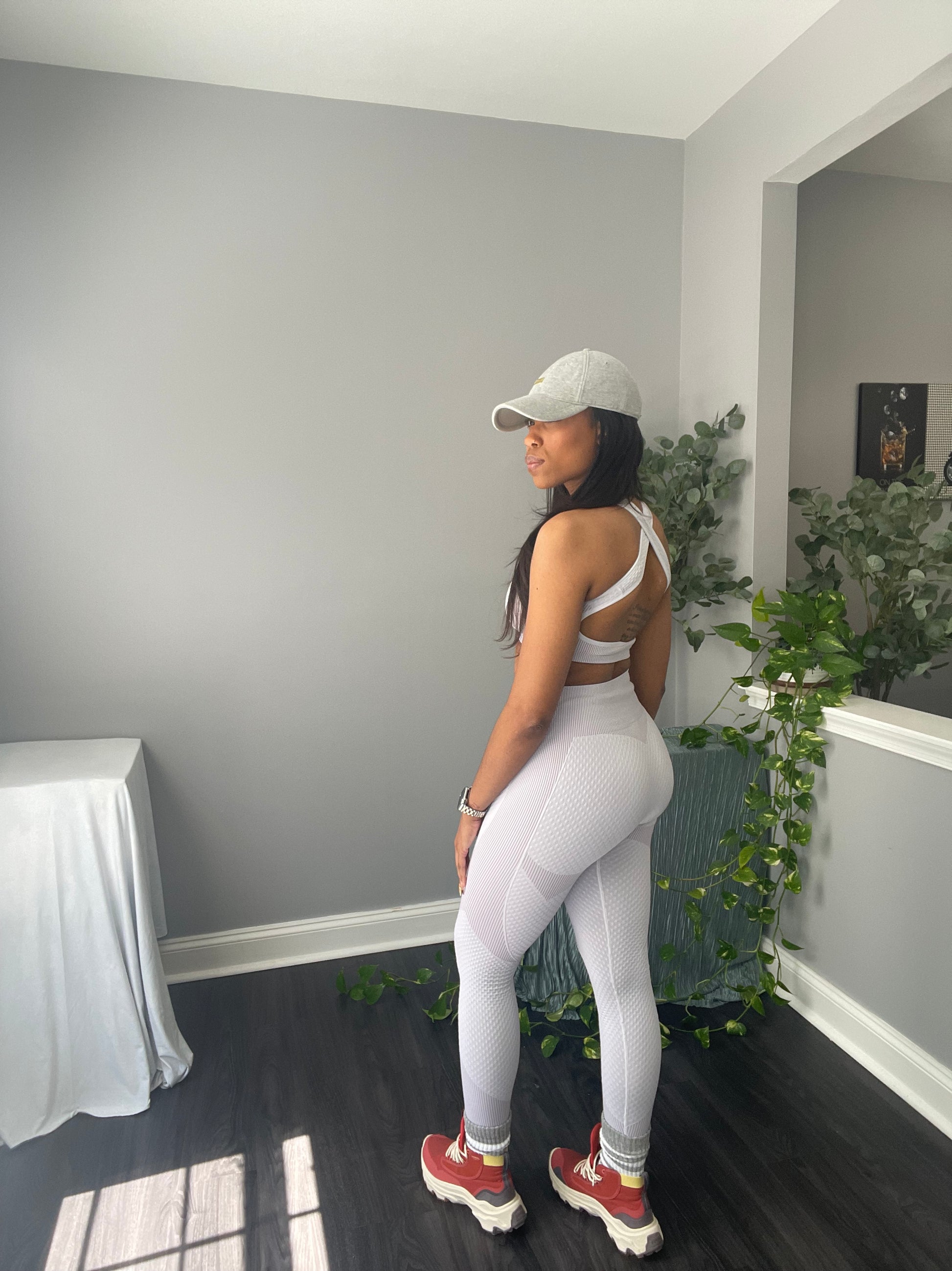 Leggings with a complimentary sports bra. Discover the ultimate comfort and confidence with Grey Sky activewear set. This stylish set is designed with a soothing grey color, perfect for any outfit. You'll feel comfortable all day long while staying confident in your look. Don't sacrifice style for comfort!